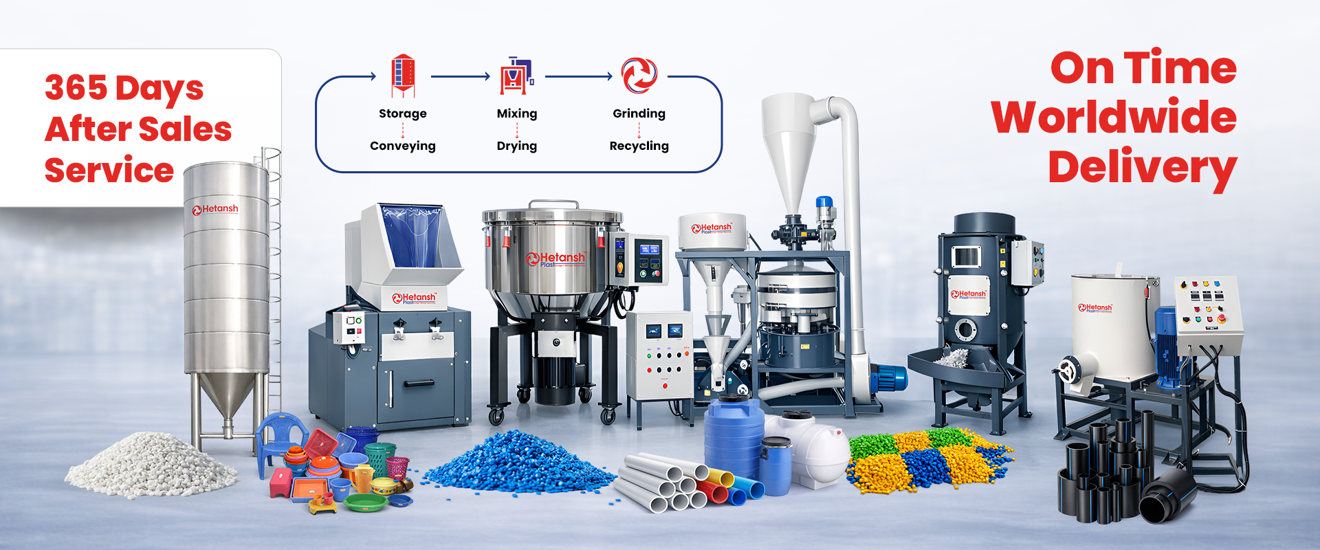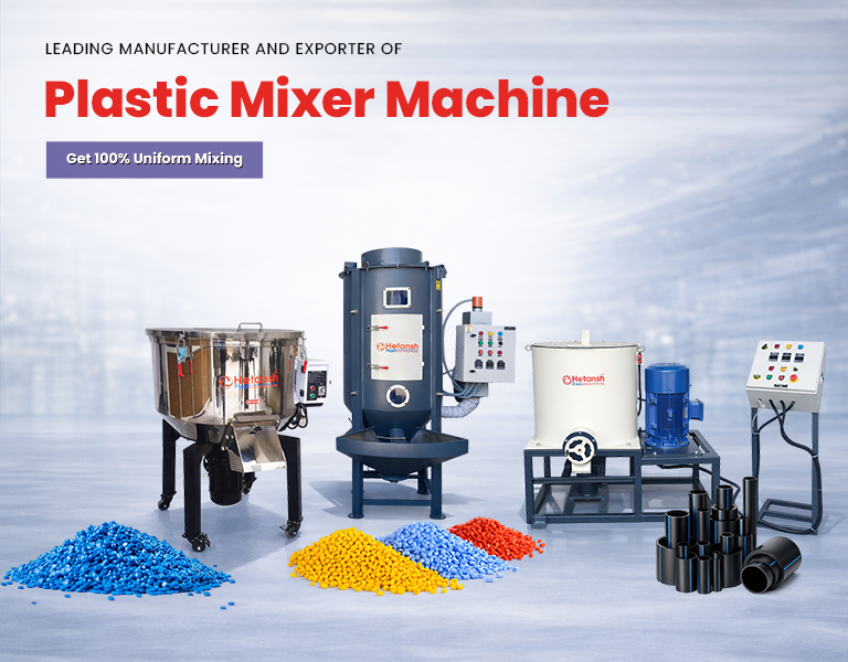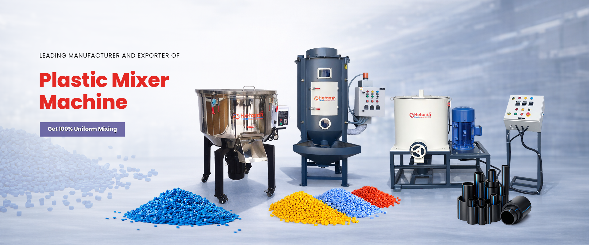 At Hetansh Plast Machinery Pvt Ltd., We specialize in manufacturing top notch quality driven Plastic Granules Mixer Machine, Vertical Plastic Mixer Dryer Machine, Masterbatch Color Mixer Machine, High Speed Plastic Mixer Machine, Plastic PVC LLDPE Pulverizer Machine, Plastic Material Storage Silos & Bins, Raw material Conveying Equipments, High Speed Heater Cooler Mixer Machine, Roto moulding Moulds and Machines.